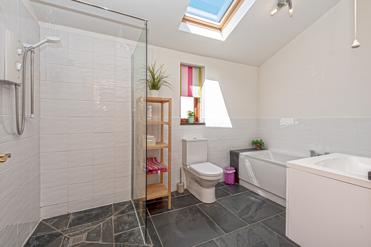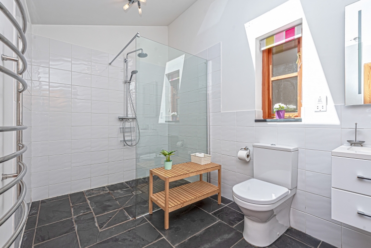 The back door leads out of the kitchen and offers level access to the parking area, and also to the well-sized utility/drying room. The utility/drying room houses a washing machine, tumble dryer plus an additional sink. There is plenty of room and underfloor heating here to dry your walking or fishing gear. This room is also space for secure storage, for your cycles, walking, or fishing gear. Outside the driveway brings you up to the parking space to the side of the house, to the front a patio with BBQ and lawned area give views over the lovely countryside to the mountains.