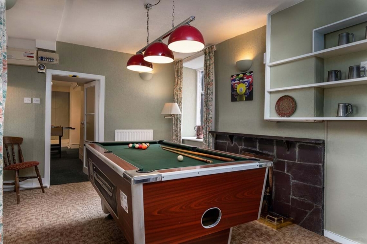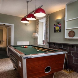 There is a comfortable TV room with piano, with a games room with slate bed pool table and dart board leading off. The elegant sitting room is the focal point of the house, with room for everyone to sit around the open log fire. A starter supply of logs is provided during the winter months.