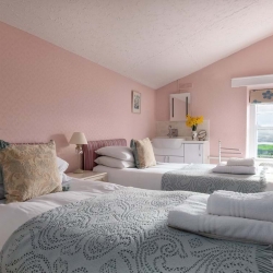 Upstairs there are two double bedrooms, both en-suite, and two twin bedded rooms together with family bathroom with separate bath and shower. Bed linen and towels are provided. The house has central heating throughout.